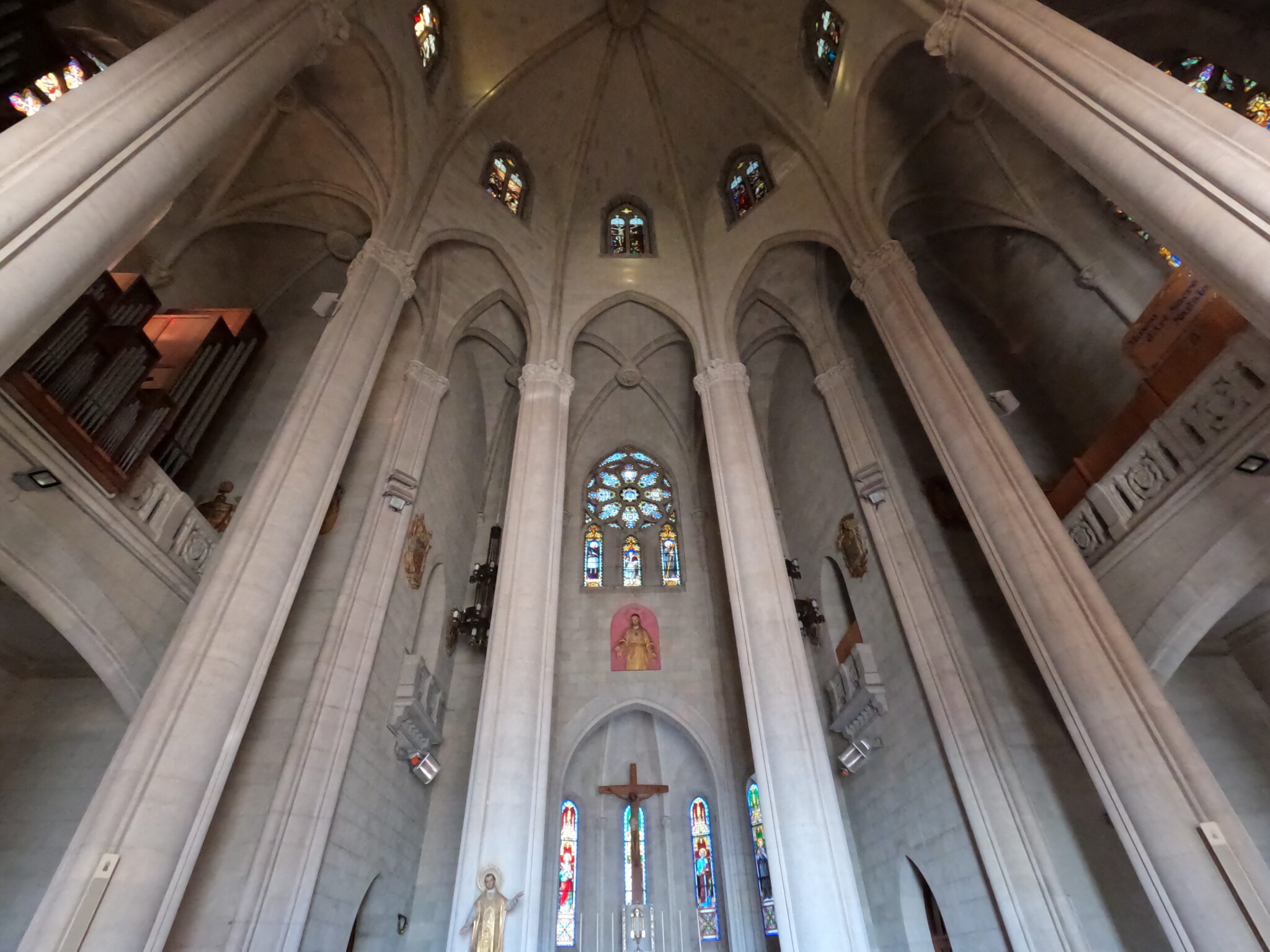 内部はぐっとシンプルで、ネオ・ゴシックらしい空までつづくような高い天井と、それを支える長大な柱、雲の巣のように交差するリブ・ヴォールトが印象的だった。