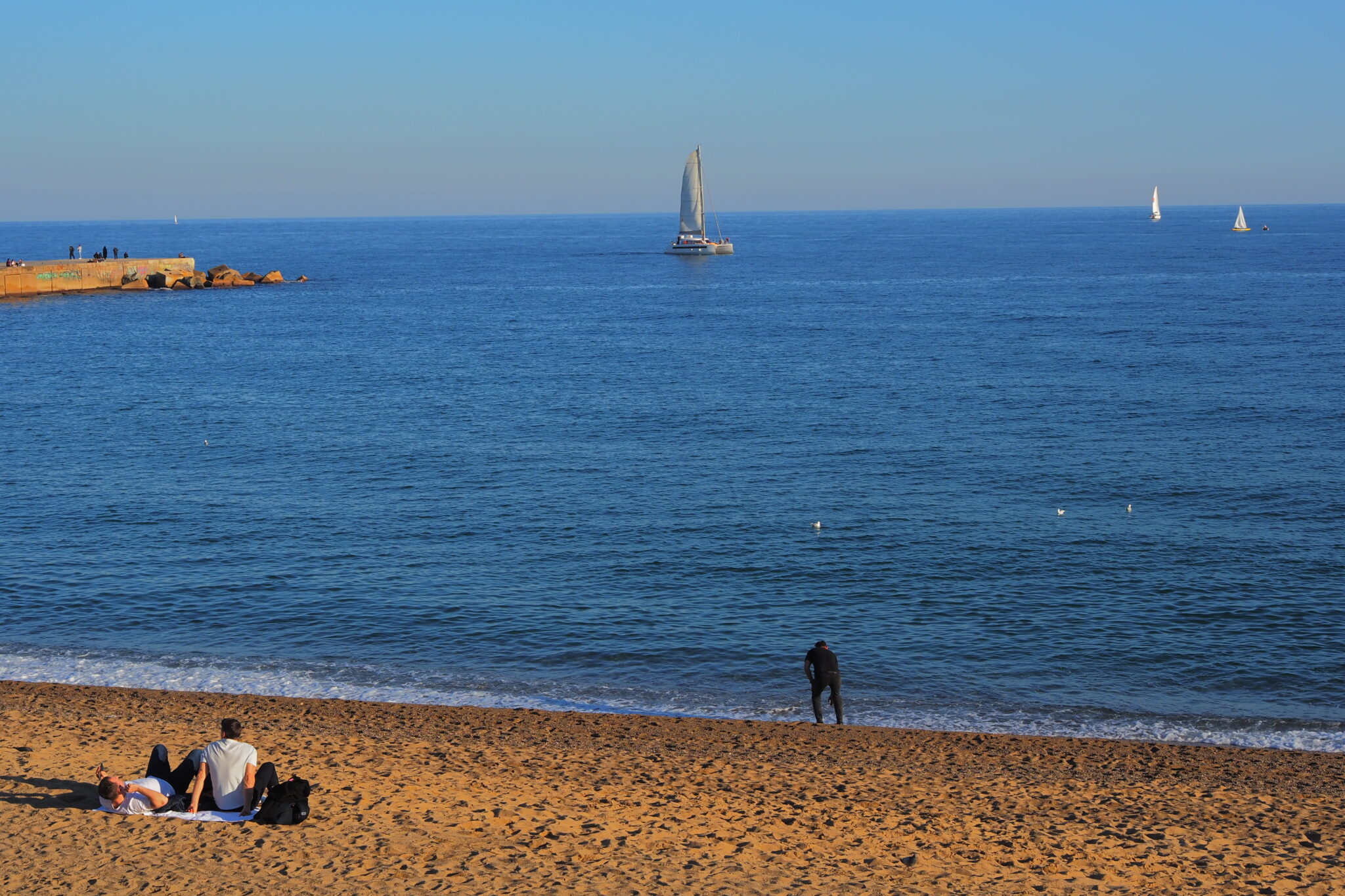 ビーチで各々の時間を過ごす人たちが穏やかな午後を演出するのは海の街ならでは。