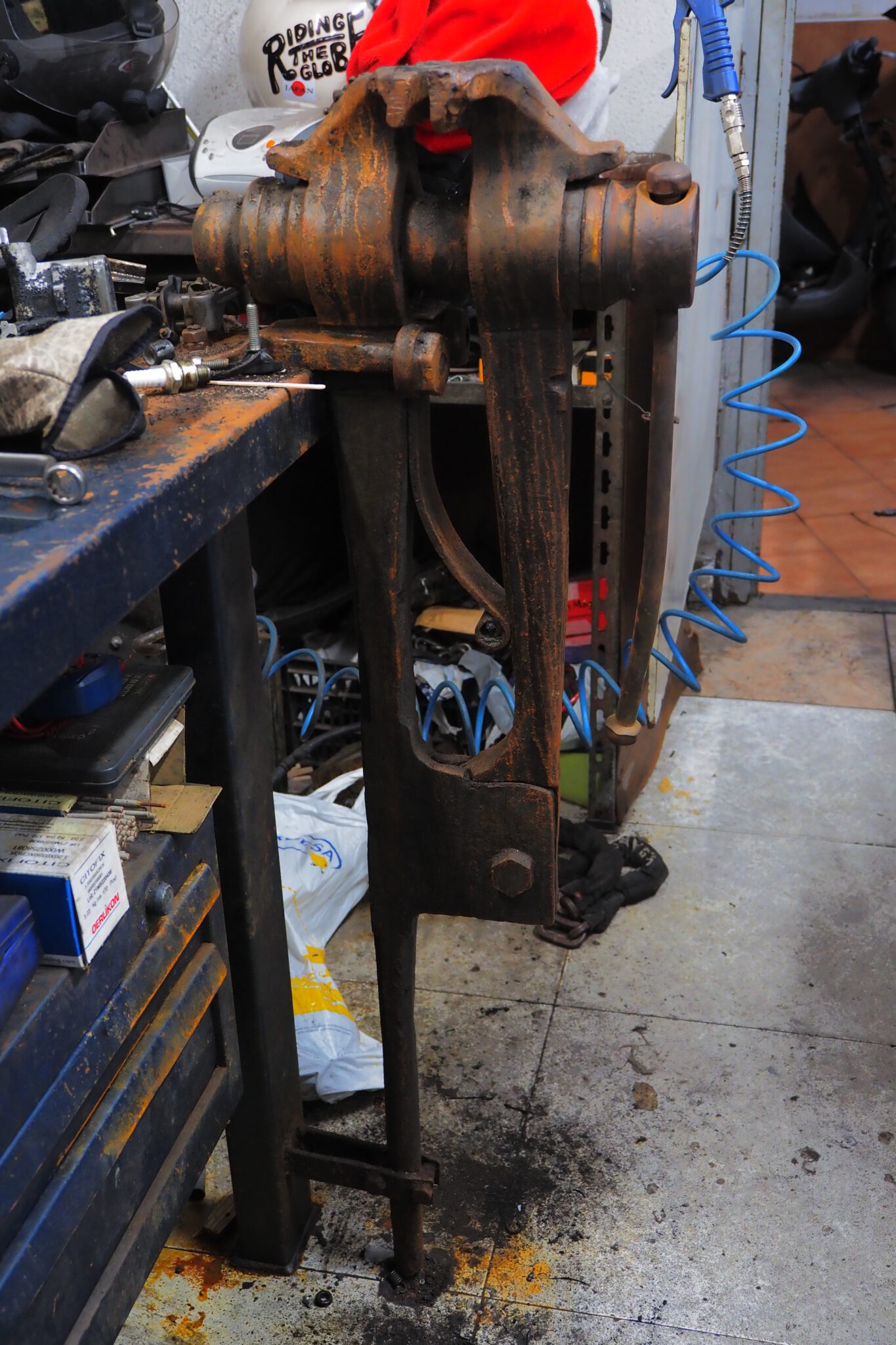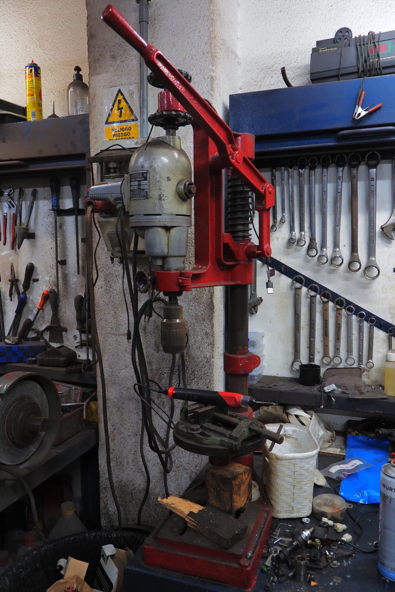 なんだこのノッポな万力は!このボール盤もなんか変わってる!