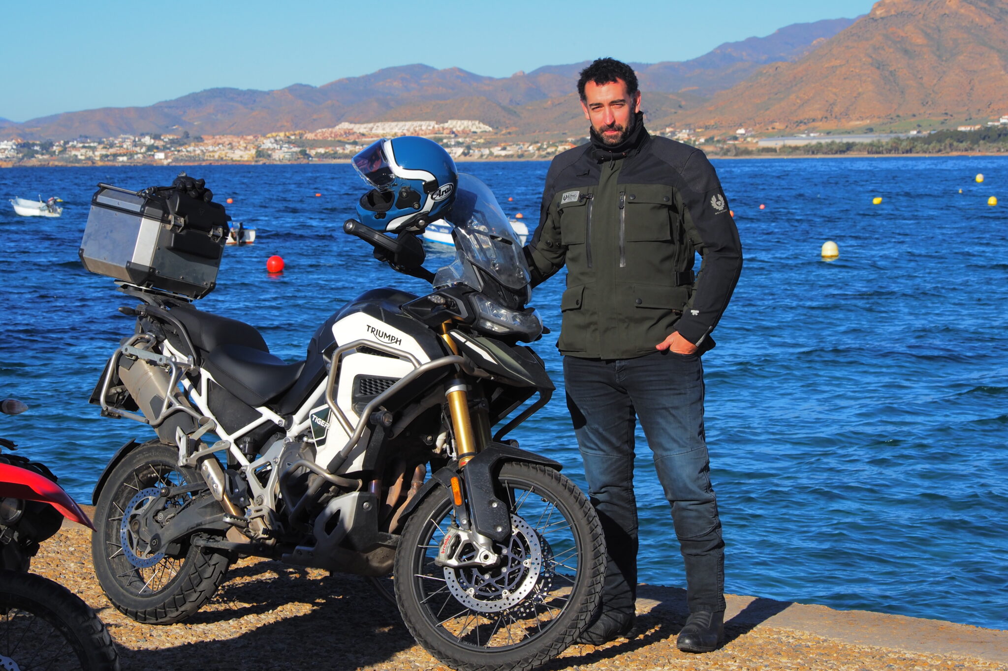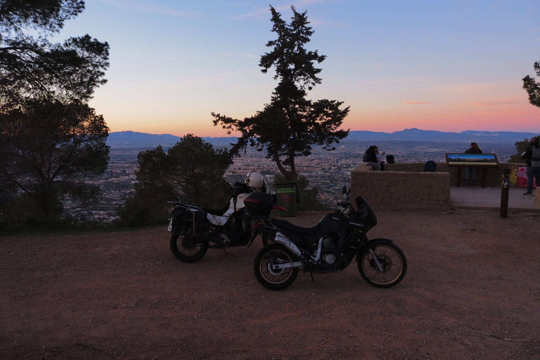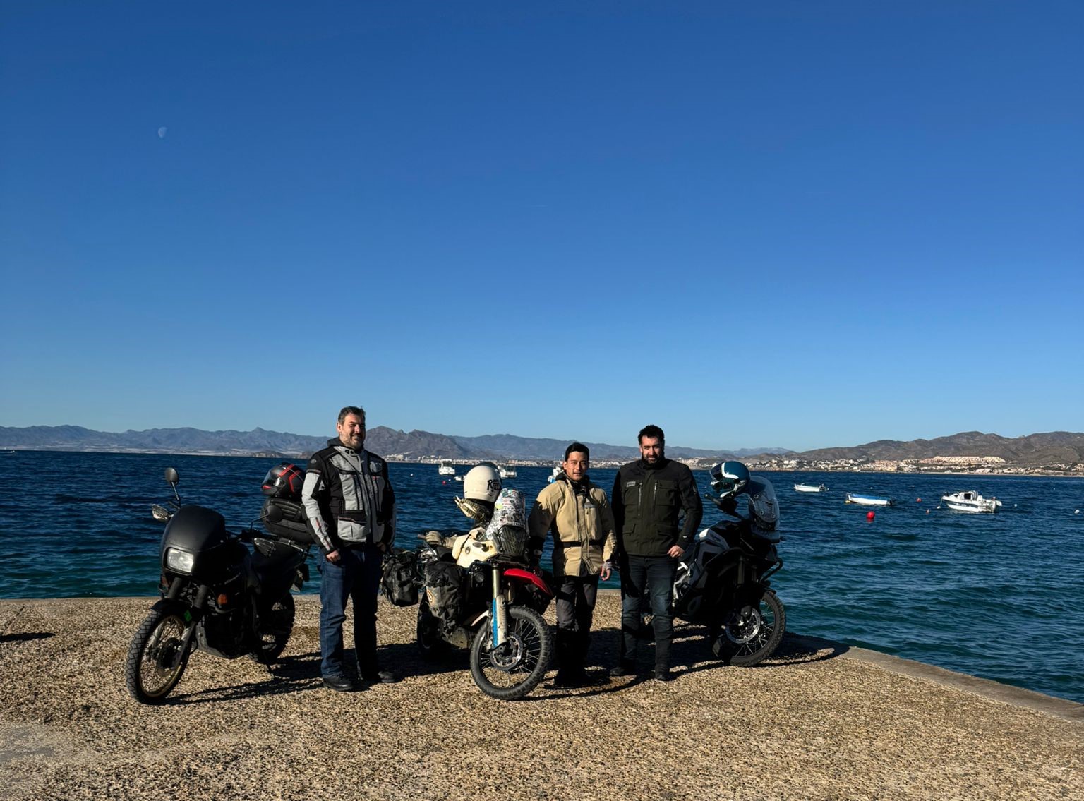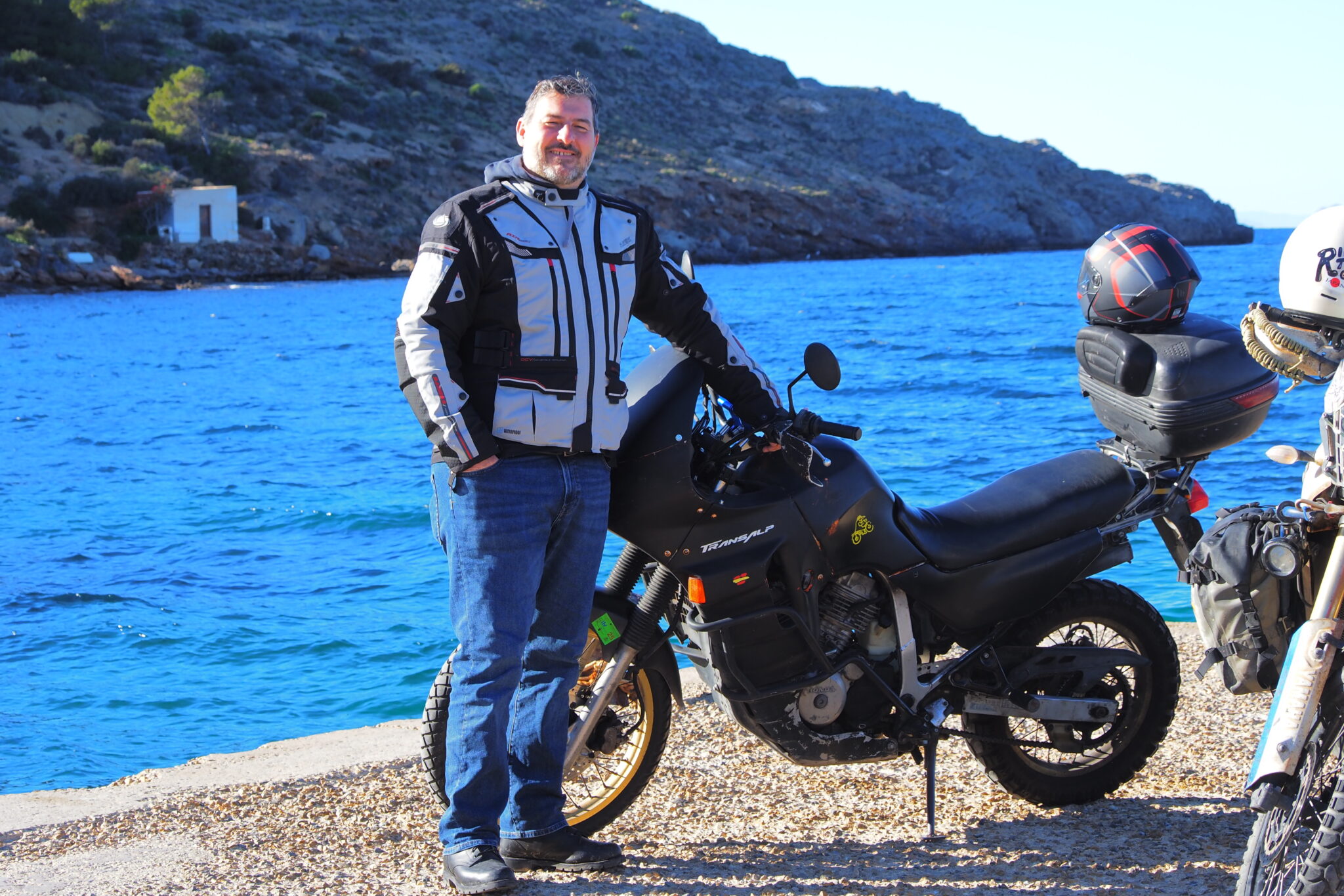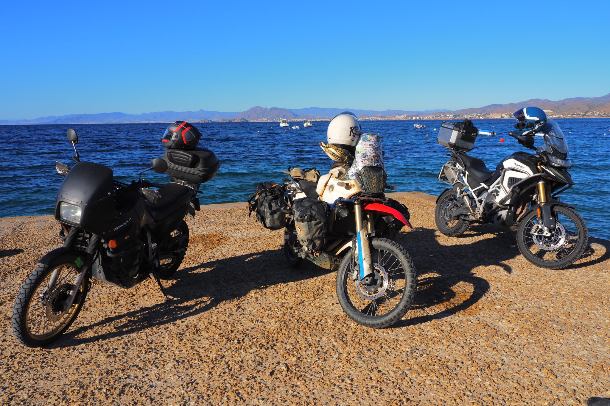Ruben の愛車は真っ黒な旧型TransAlp, Alejandro は Triumph Tiger.