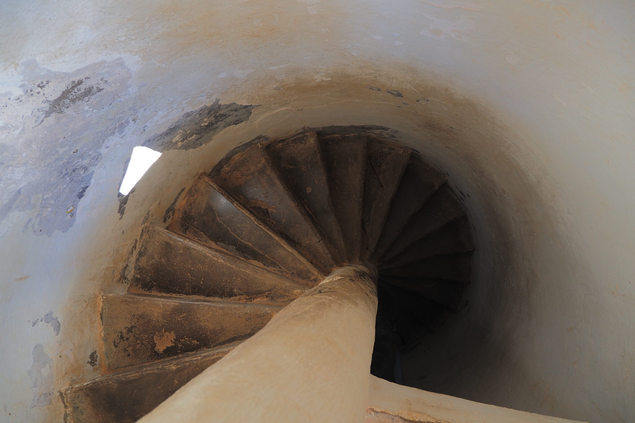 城のような見た目の一画から狭い螺旋階段をのぼって、