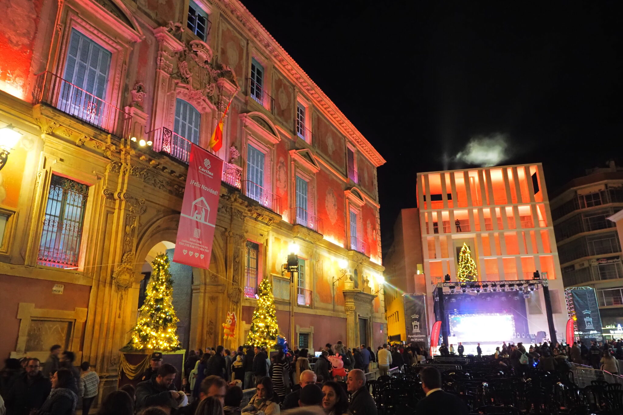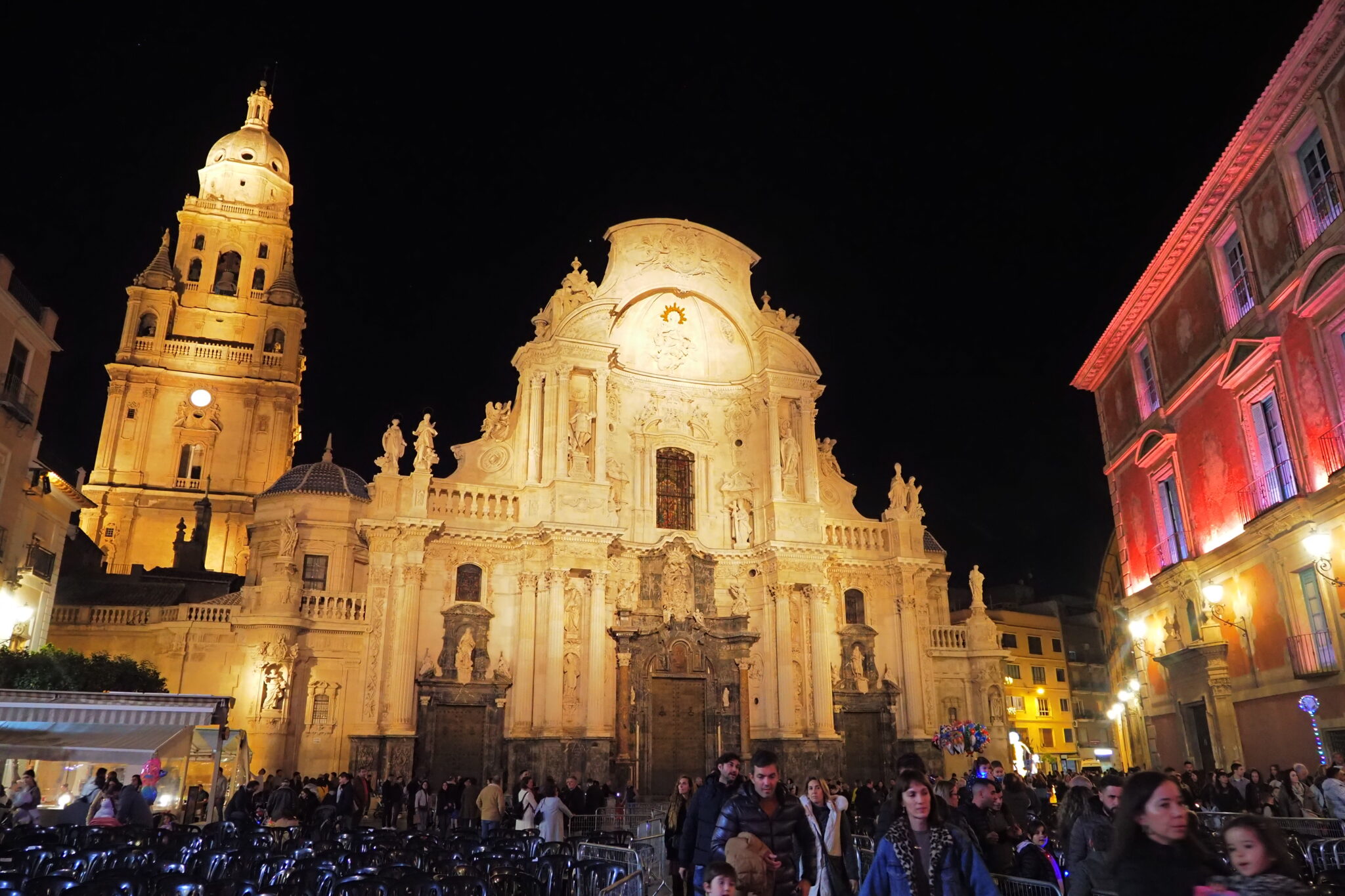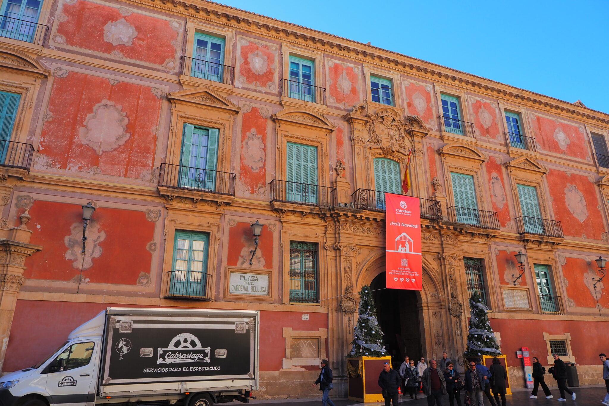 ムルシア大聖堂正面ファサード前の、Plaza del Cardenal Belluga; ベルーガ枢機卿広場で またもBelén; ベレンが展示されてた。