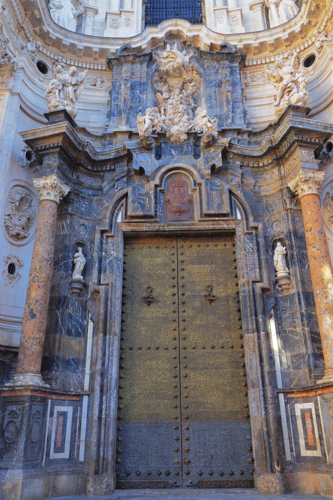 まぁ傑作とよばれる詳しい所以はわからないけど、バロックらしい精密な彫刻が彫られた白い砂岩のファサードと、黒大理石の玄関部分のコントラストは、確かにド迫力だった。