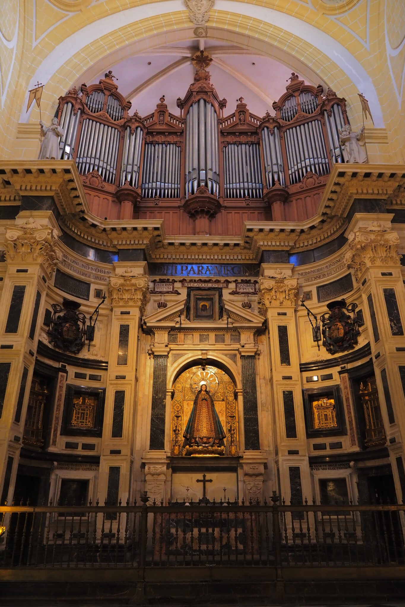 入口正面の聖母像とオルガン。