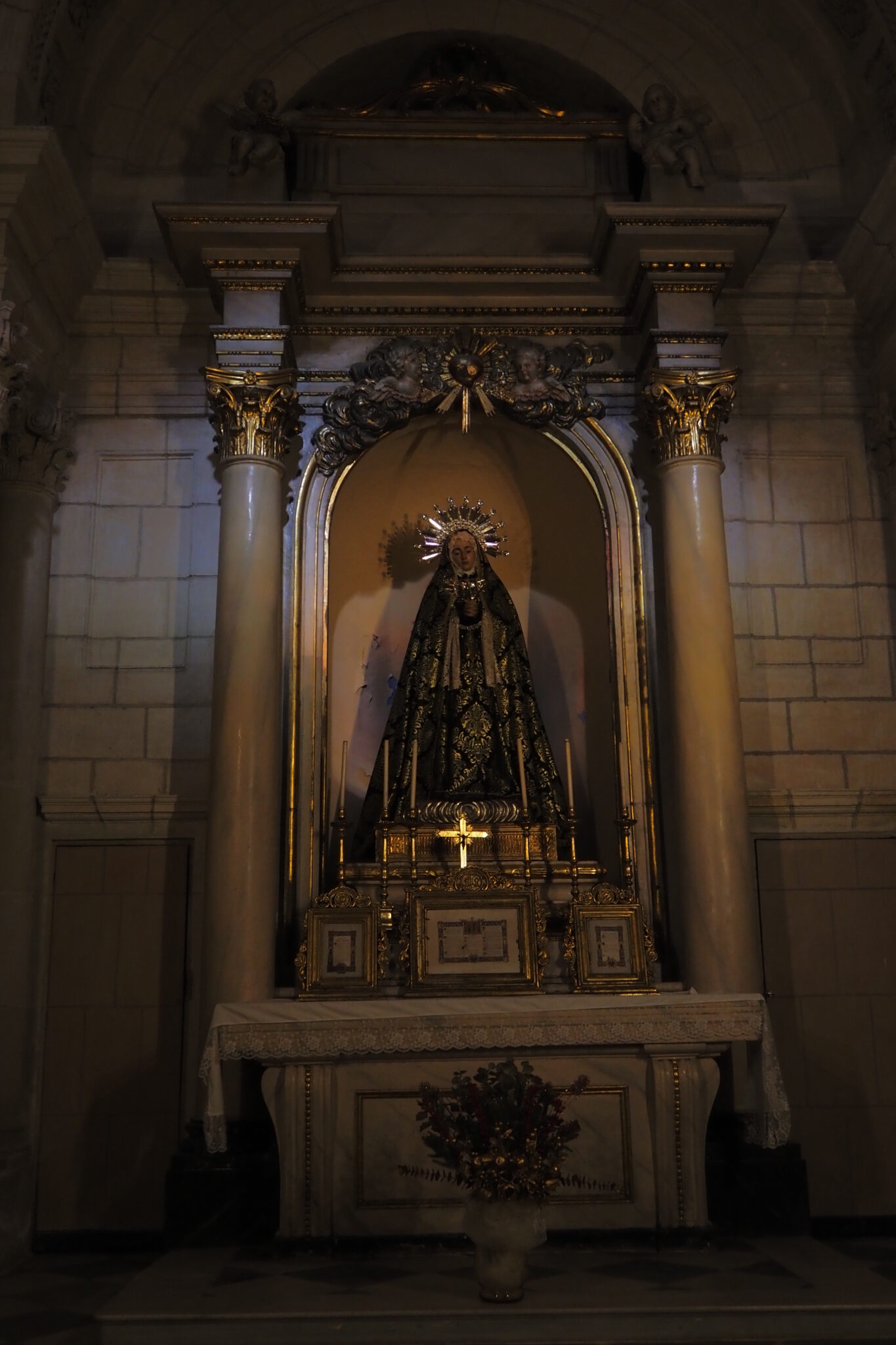 聖母像。地元では La Morenica; ラ・モレニカの愛称で呼ばれ、年に2回 春と秋口にこの聖母像を先のカテドラルに移動する Romeria; ロメリア(巡礼) というイベントがあるらしい。巡礼中は、数十万人の人々が 聖母像と共に歌って踊りながら大聖堂とこの高台の間を往復するというから、すごい迫力だろうなぁ。いつかムルシアを再訪することがあれば、ロメリアに重ねるのはありかもしれない。