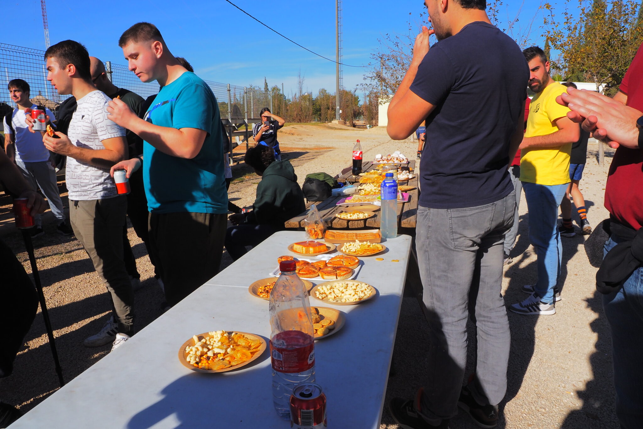 オイル交換を終えて、センターへ移動 Ruben と彼の息子の Ruben(同じ名前笑)、友人の Manu と Raul と。