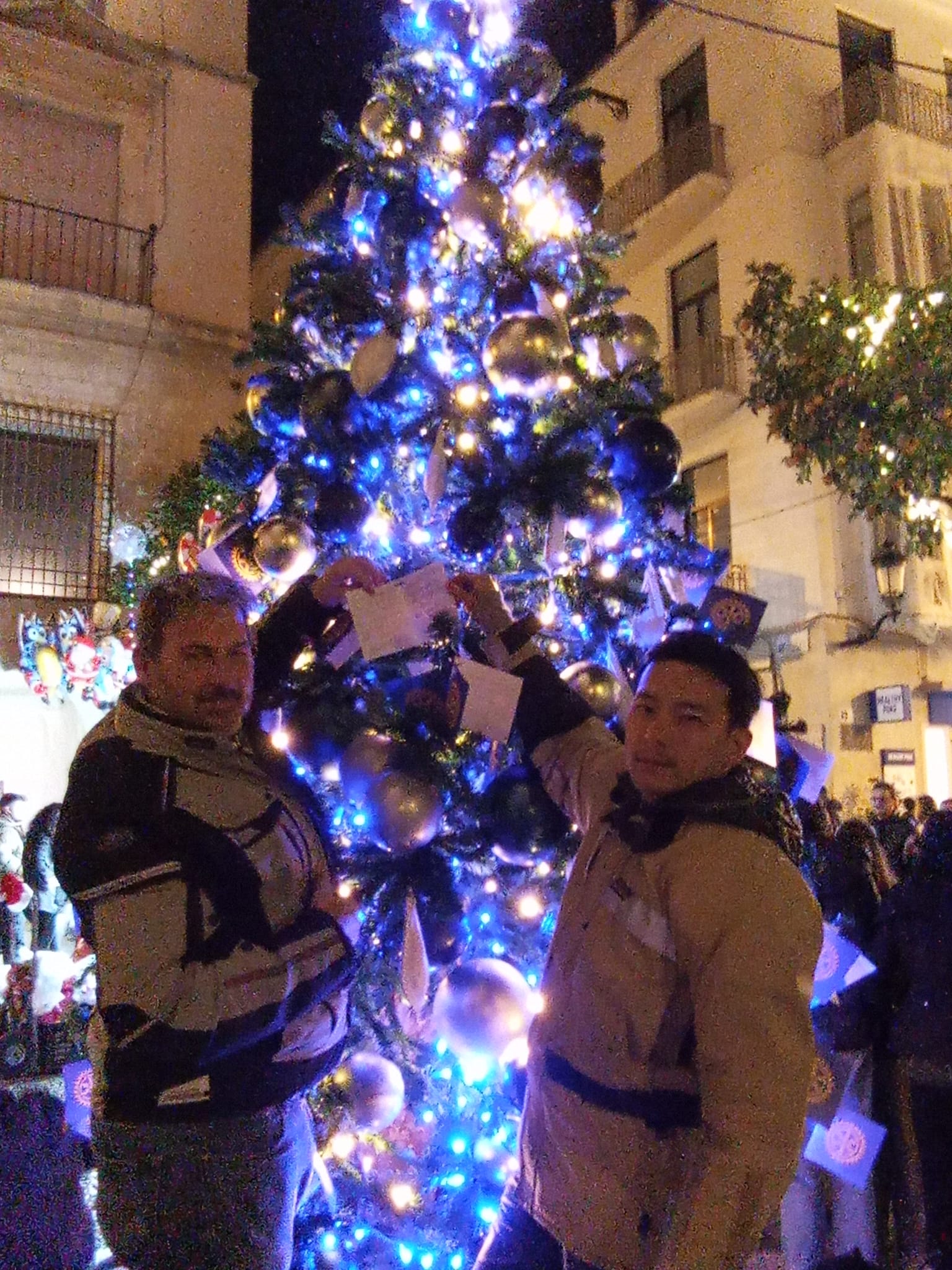 大聖堂前のクリスマスツリーには、みんな願い事を書いて吊るすらしい。